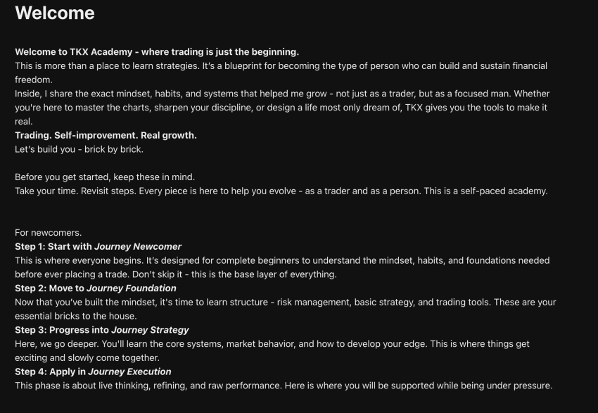 For years, I kept things low-key, letting my results speak. Now, I’m opening the doors. TKX Trading isn’t just a course – it’s the exact path I took. If you’re ready to level up, let’s build.